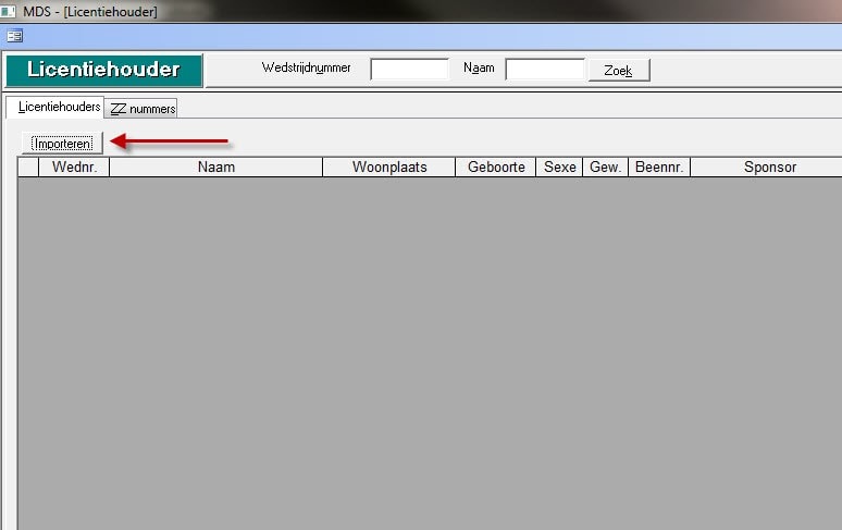 Zodra je een nieuwe licentiebestand hebt aangemaakt bij de datasets heb je een leeg bestand zonder rijders. Door op Importeren te klikken kun je een bestand met licentiehouders toevoegen. (klik hier voor een uitleg voor het aanmaken van een licentiebestand in Vantage).