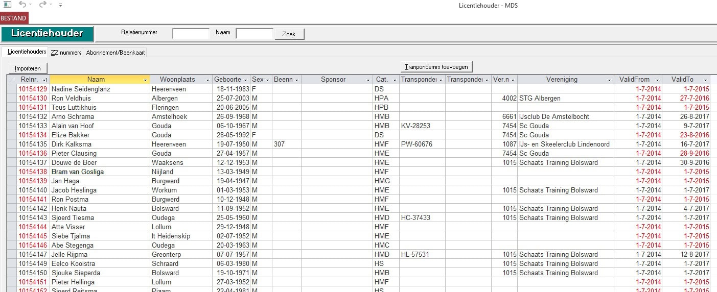 hieronder zou je alle rijders kunnen toevoegen die een abonnement of baankaart hebben om te controleren of deze rijders mogen meedoen. Wanneer een rijder niet voldoet aan deze voorwaarde (opgenomen in deze lijst) zal het relatienummer in de competitie rood kleuren.